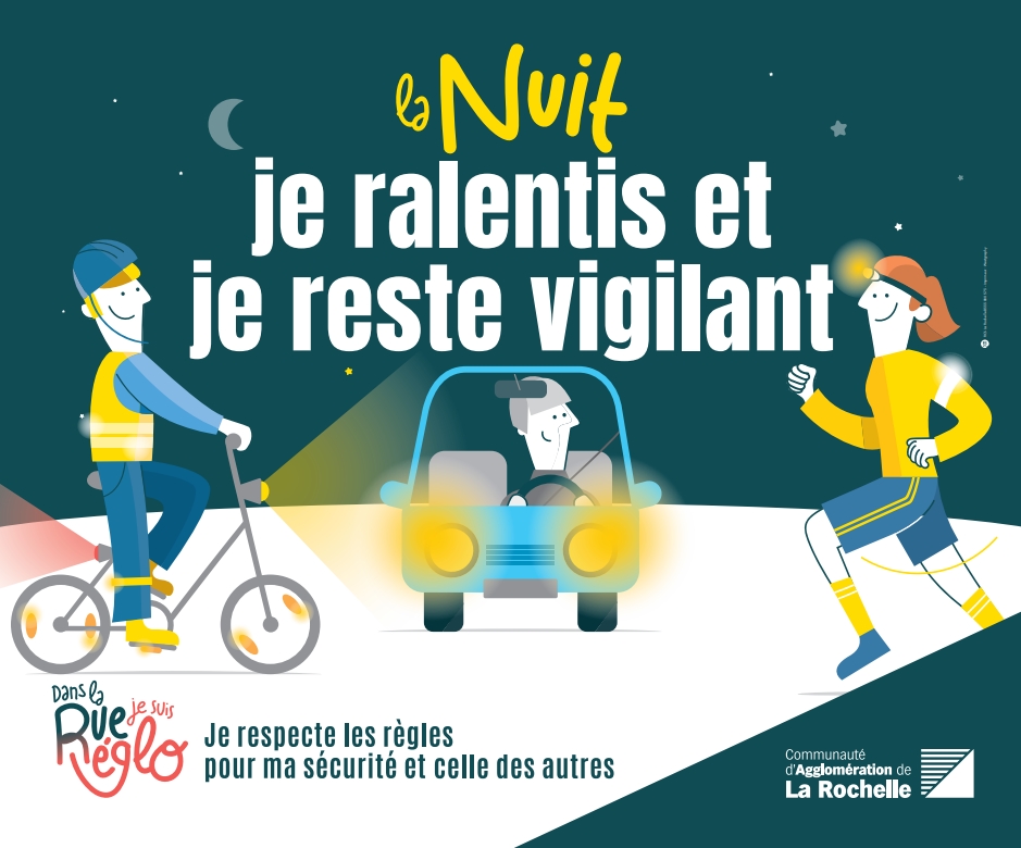 Que vous soyez à vélo, à pied ou en voiture, la sécurité nocturne repose sur un principe simple : mieux se voir, mieux se comprendre, mieux partager la route. Alors, cet automne... dans la nuit, soyez réglo !